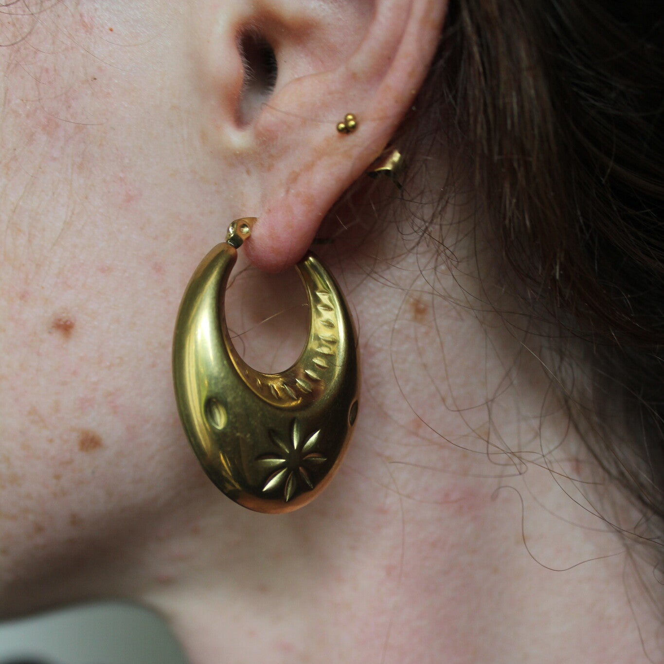Gold-colored statement earrings