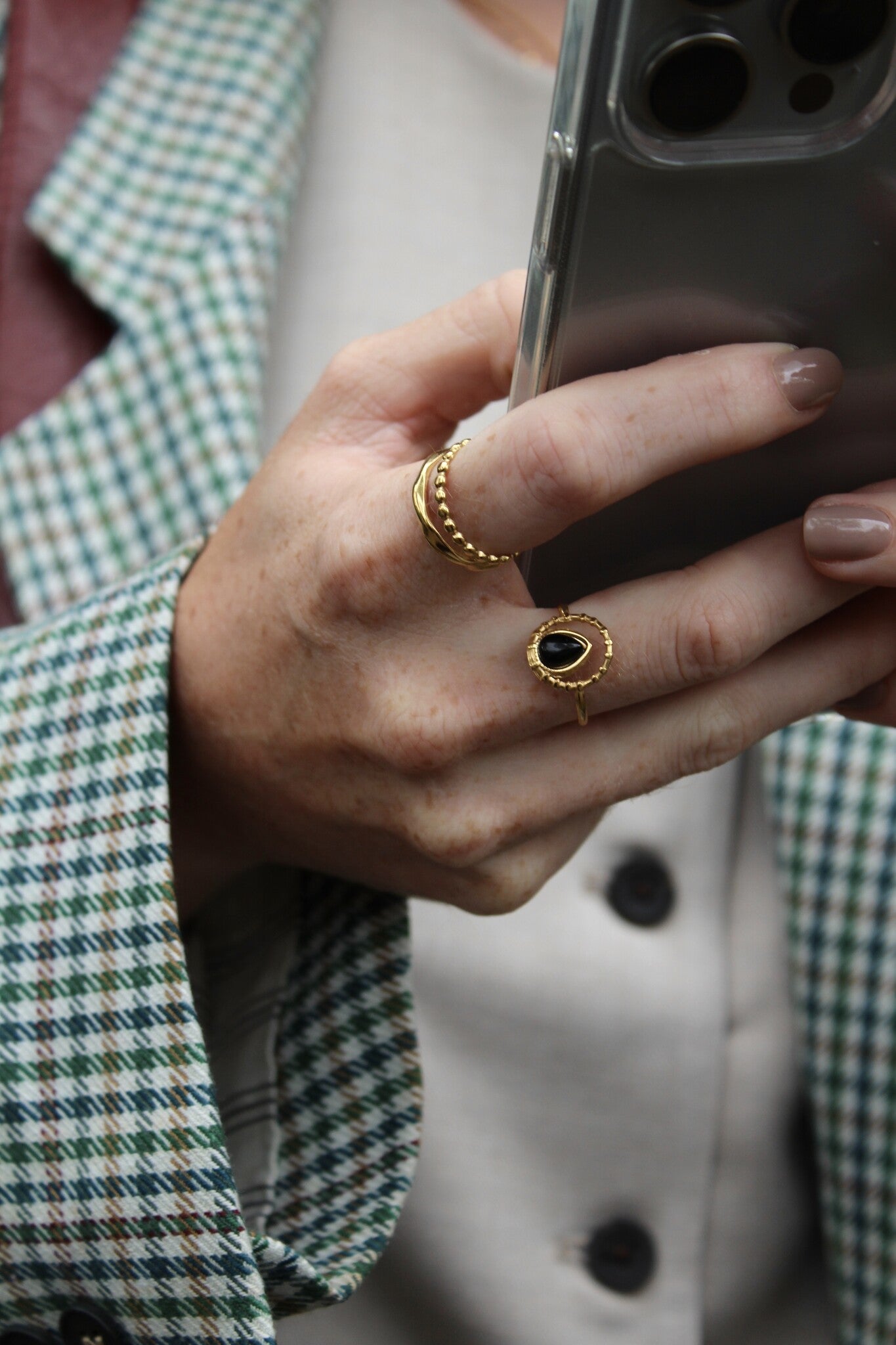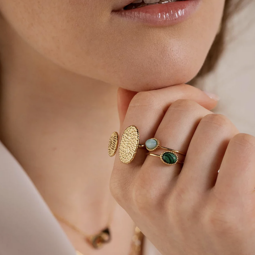 Unser Natursteinschmuck ist aus stainless steel gefertigt, wodurch er farbecht, langlebig und wasserfest ist. Kombiniere Halsketten, Armbänder, Ringe und Ohrringe für einen stilvollen, persönlichen Look, der zu deiner Energie passt.