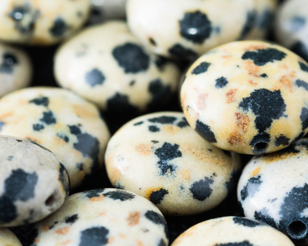 Verspielt und zugleich erdend: Dalmatiner Jaspis ist bekannt für sein einzigartiges, gesprenkeltes Muster, das Freude und Positivität ausstrahlt. Man sagt, dass dieser Stein das innere Gleichgewicht fördert, vor negativer Energie schützt und daran erinnert, das Leben nicht zu ernst zu nehmen.