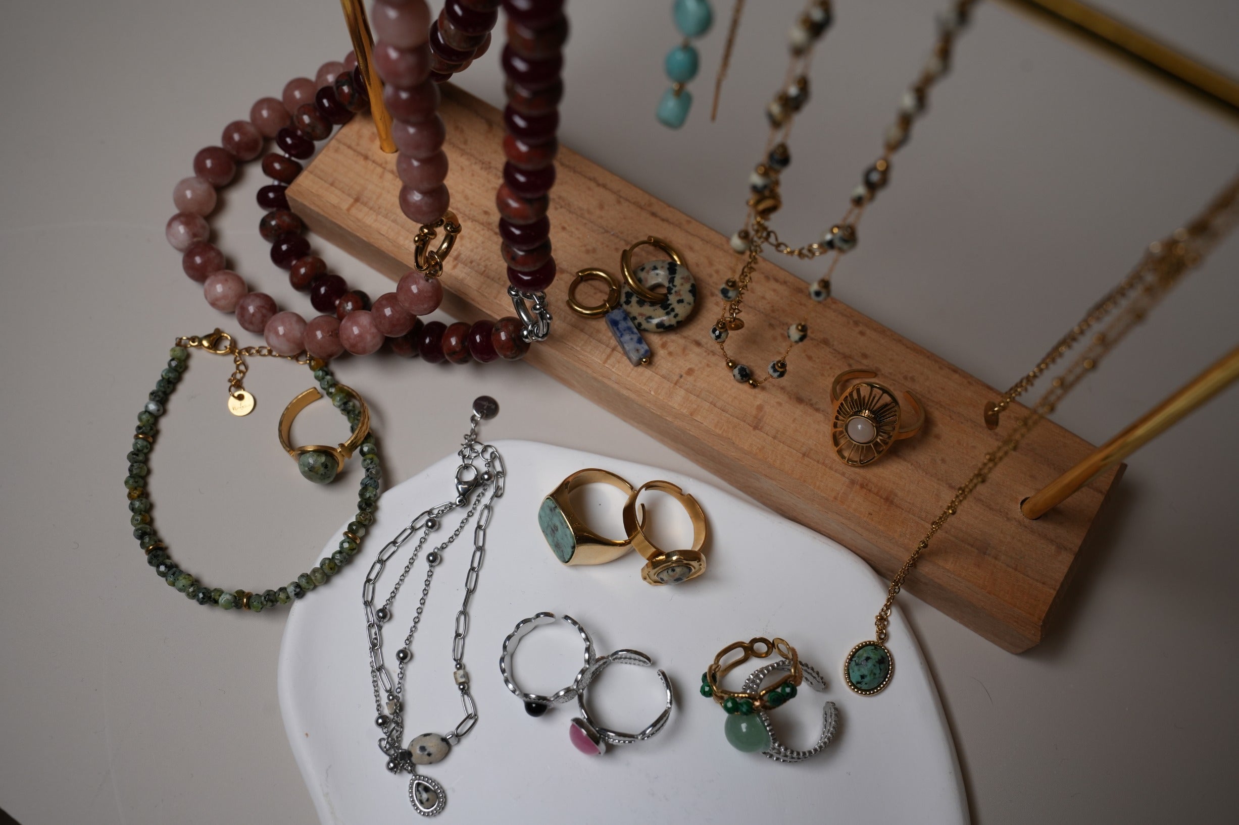 Unsere Kollektion an Natursteinschmuck ist perfekt für alle, die Stil und Bedeutung verbinden möchten. Von Halsketten und Armbändern bis zu Ringen und Ohrringen – jeder Stein verleiht deinem Look einen einzigartigen Charakter.