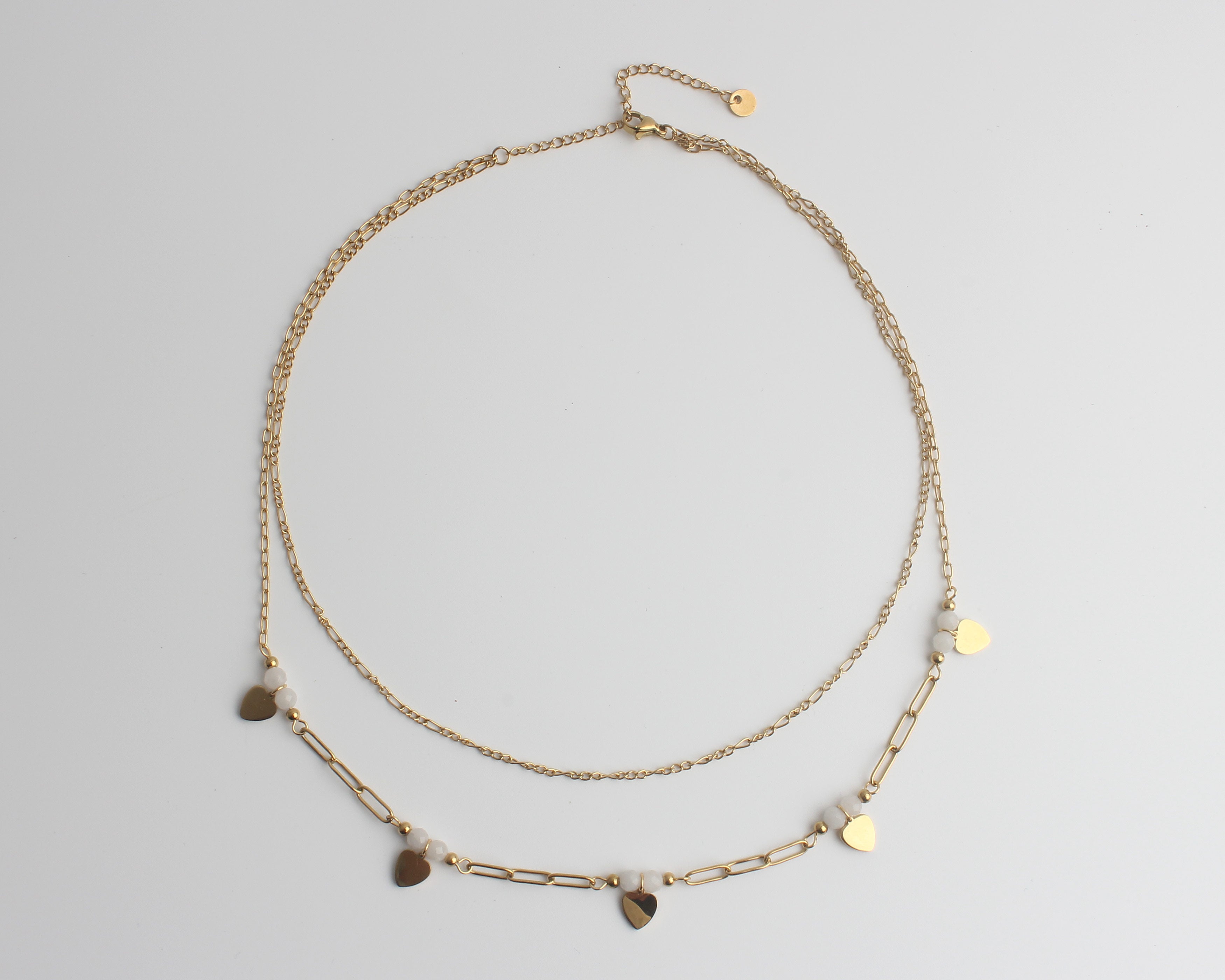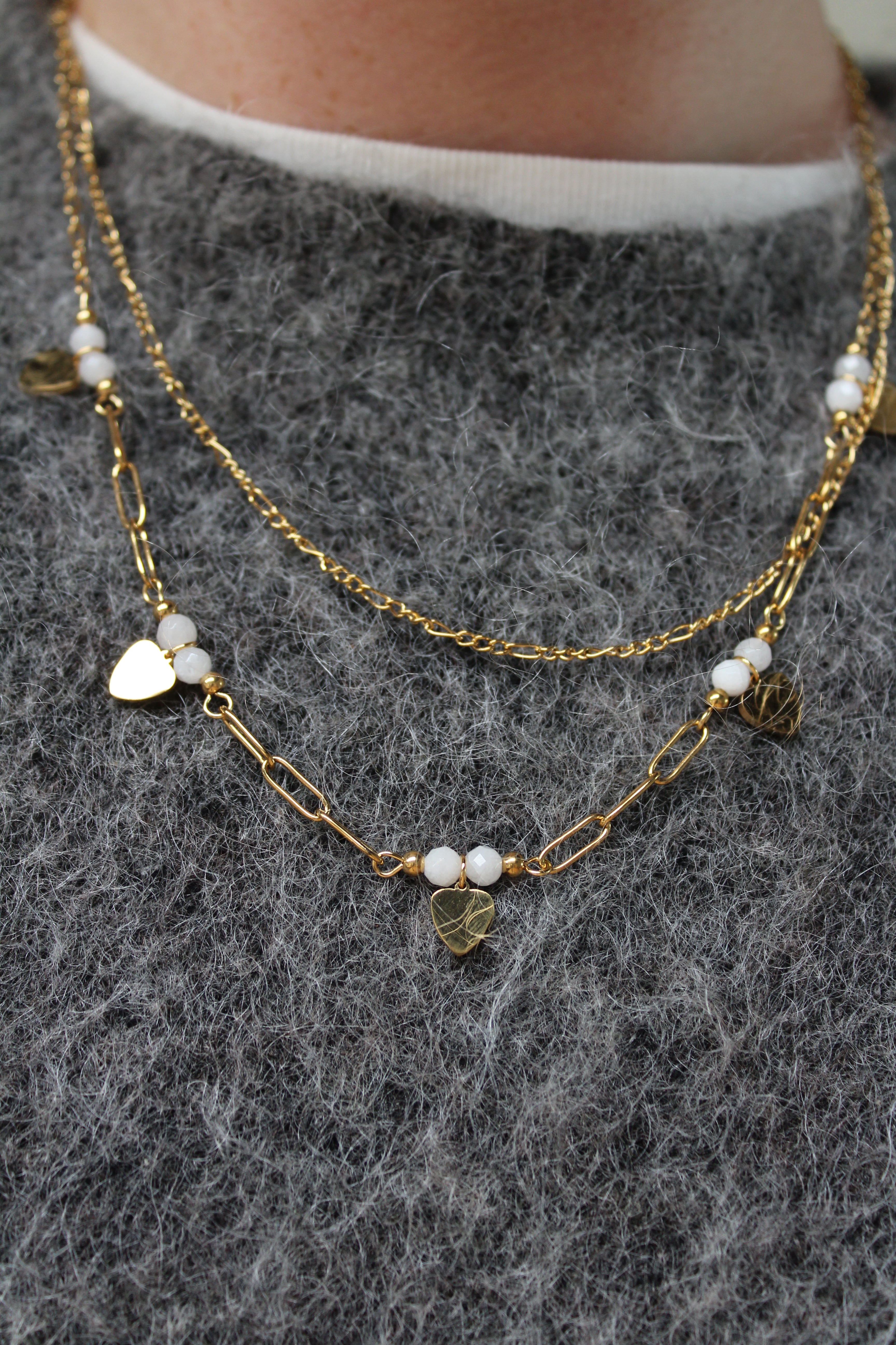 Möchten Sie eine etwas auffälligere Halskette tragen? Dann entscheiden Sie sich für unsere doppelten Halsketten, um einen spielerischen Effekt zu erzielen. Wir haben die doppelten Halsketten in Gold und Silber.