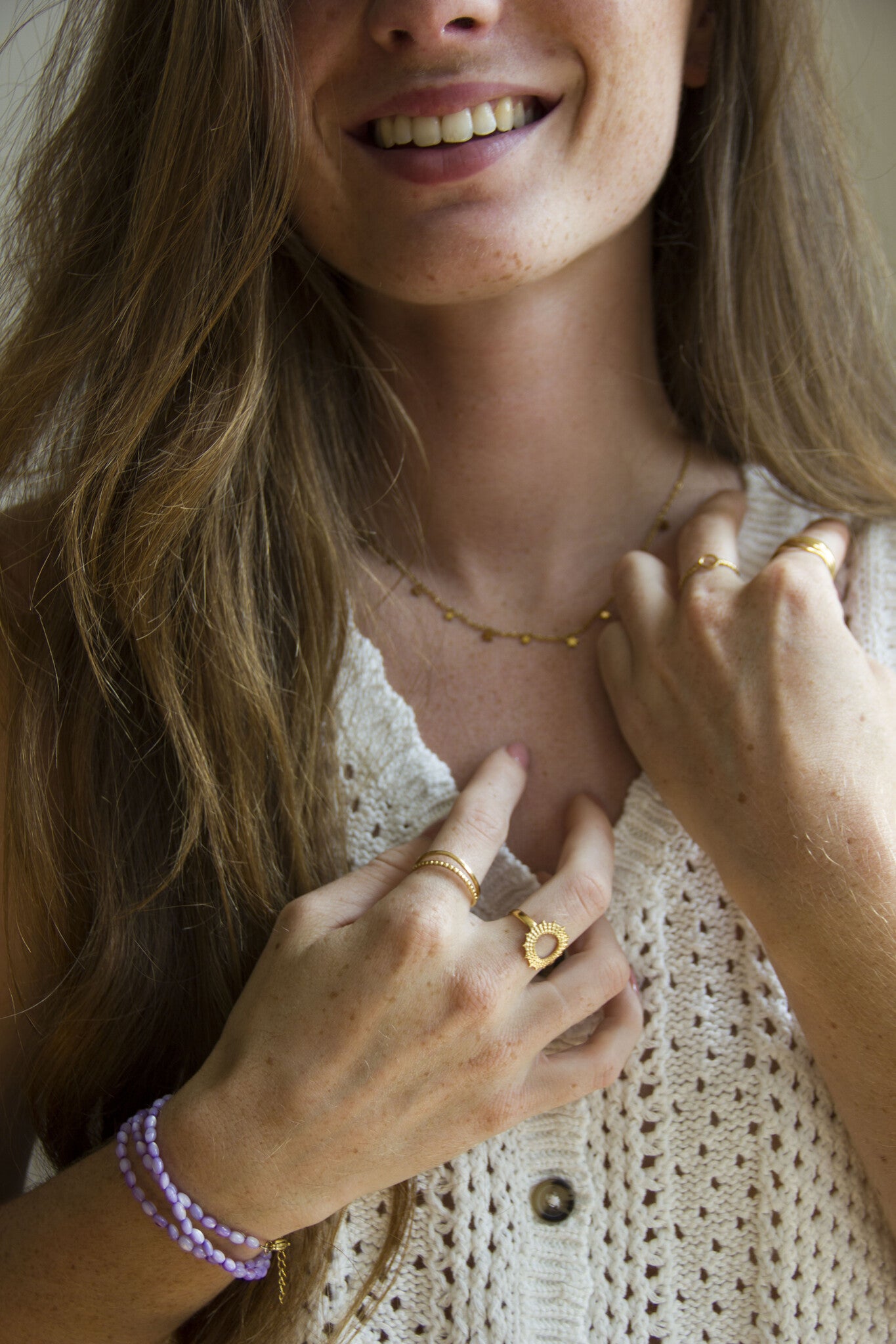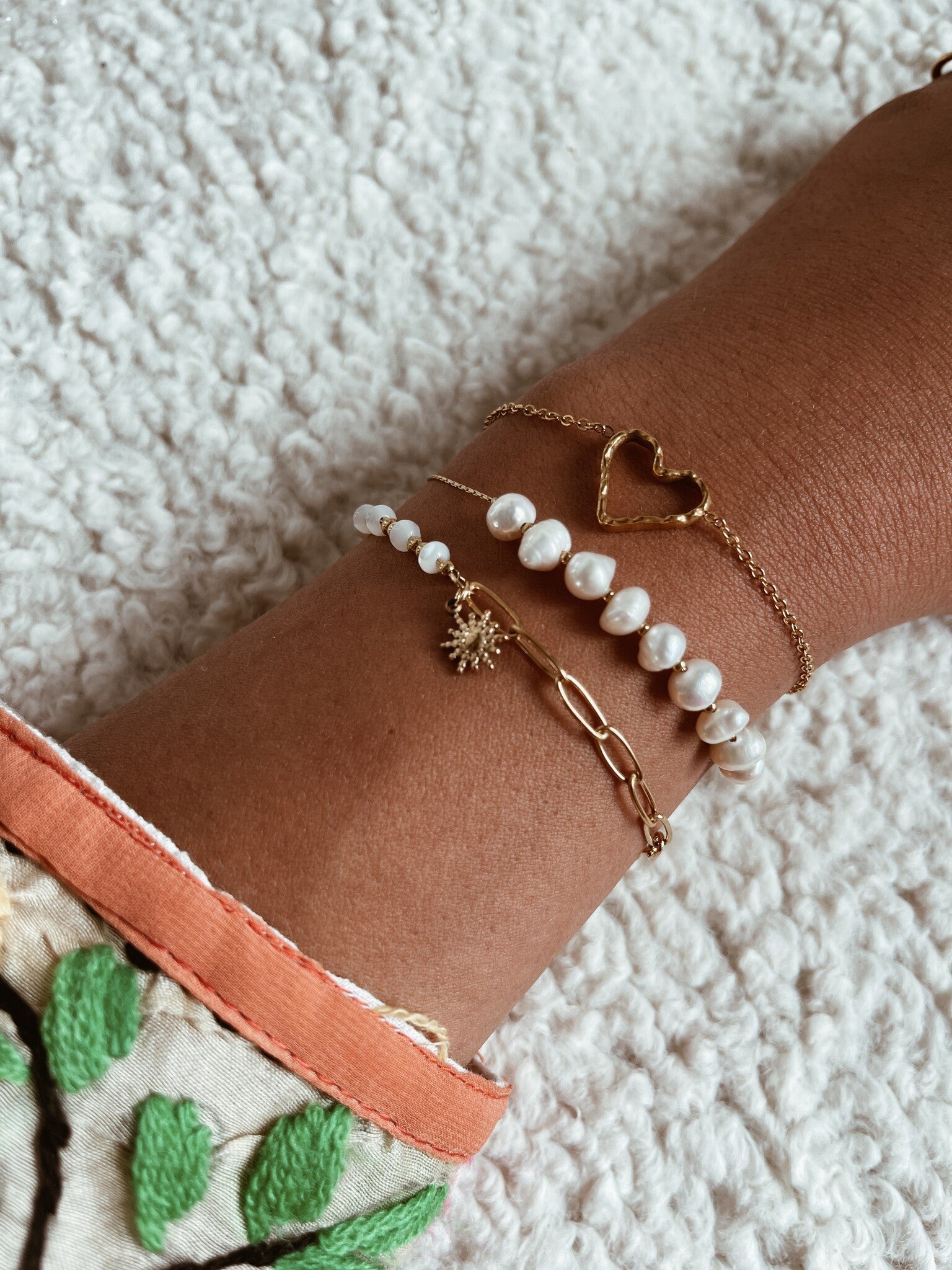 Descubre nuestra colección de playa: joyas resistentes al agua de acero inoxidable, adornadas con conchas, perlas y detalles veraniegos. Perfectas para la playa, el mar o la piscina, sin preocuparte de que se decoloren.