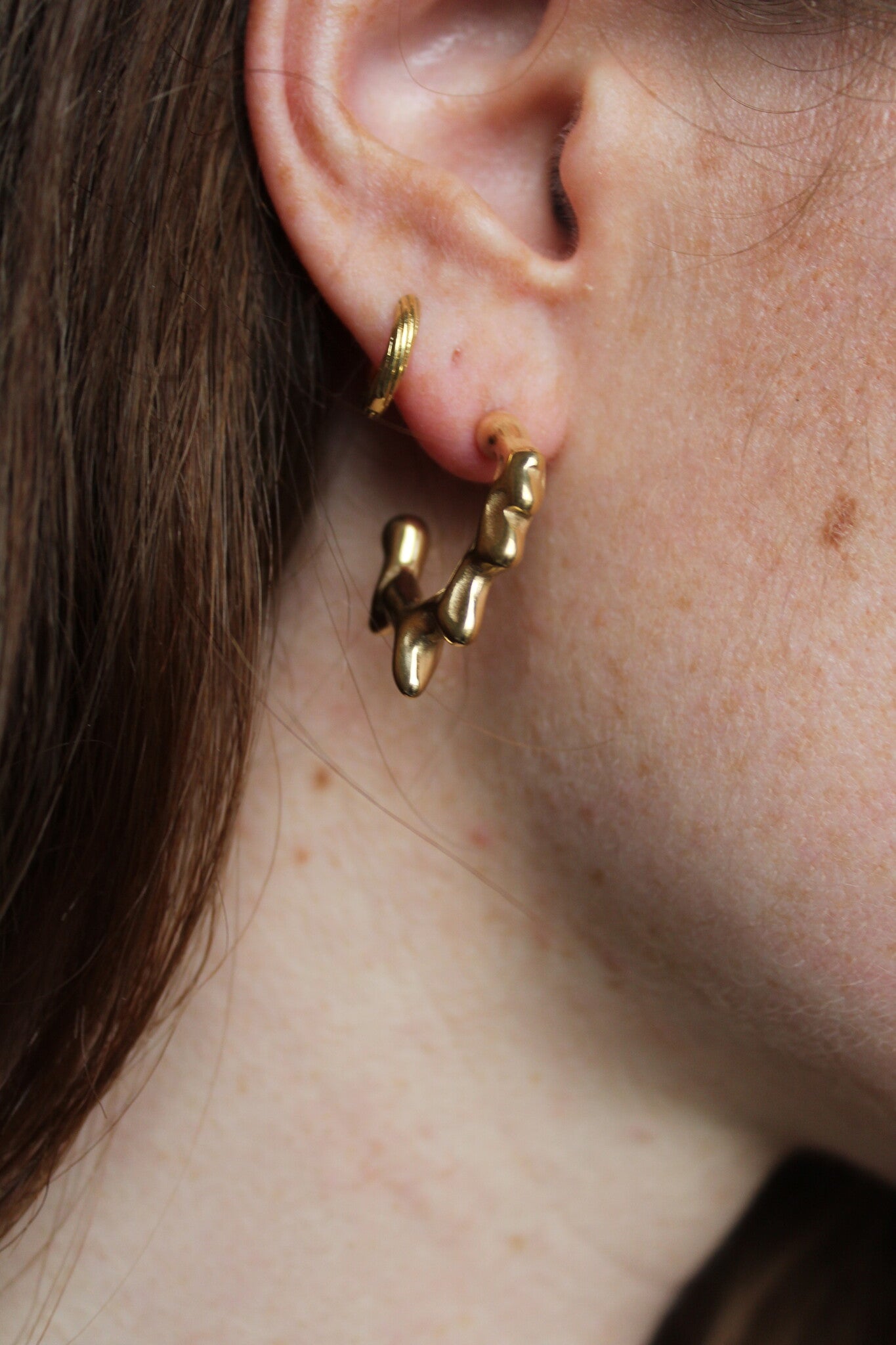 hartjes oorbellen en hartjes studs oorbellen op een model